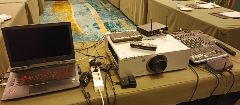 Seamlessly stream your conferences and events across Zoom, Teams, and YouTube with studio-grade sound and synchronized in-room projection.
